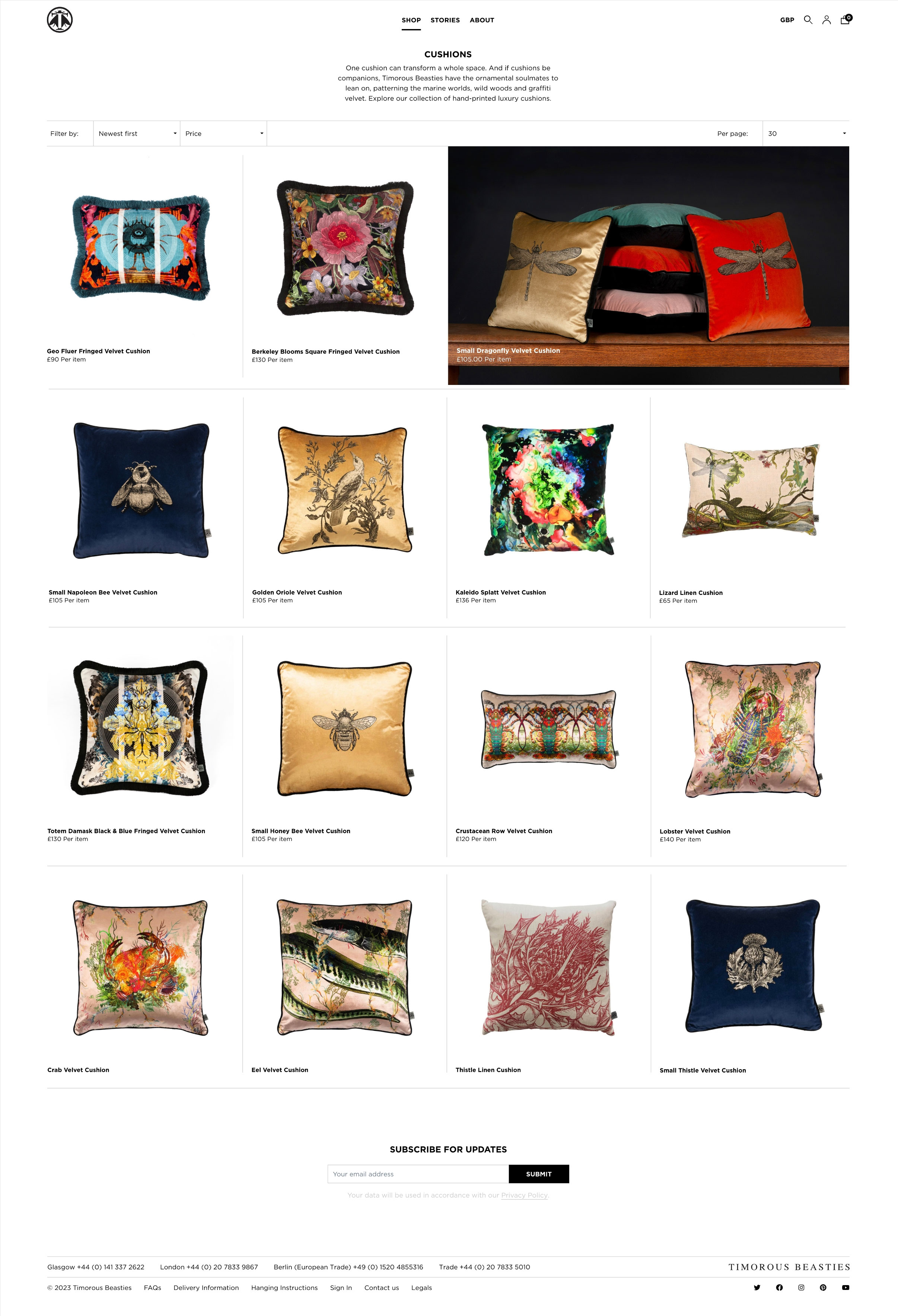 Scottish design icons Timorous Beasties are known for their bold, unconventional aesthetic and diverse range of creative work. We designed a flagship digital store that captures their irreverent style and international reputation, while delivering a seamless e-commerce experience built for engagement and conversion. The result is a platform where distinctive design meets measurable performance.